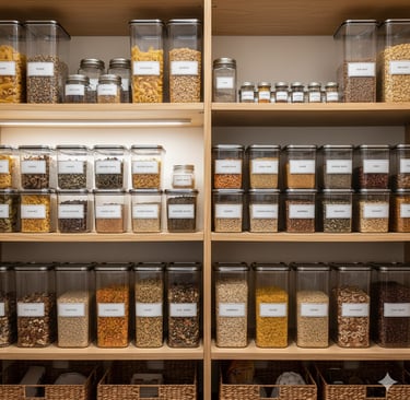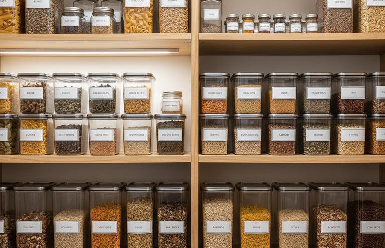 Transfer pantry items like flour, sugar, pasta, and grains into clear containers.